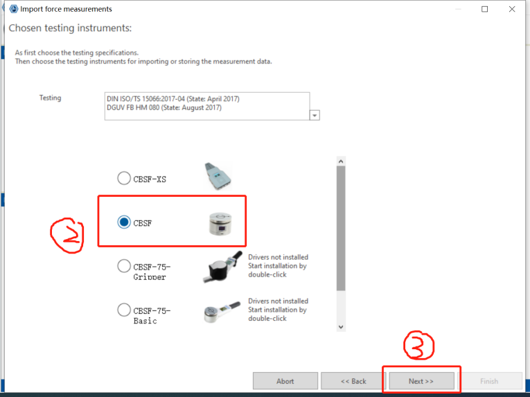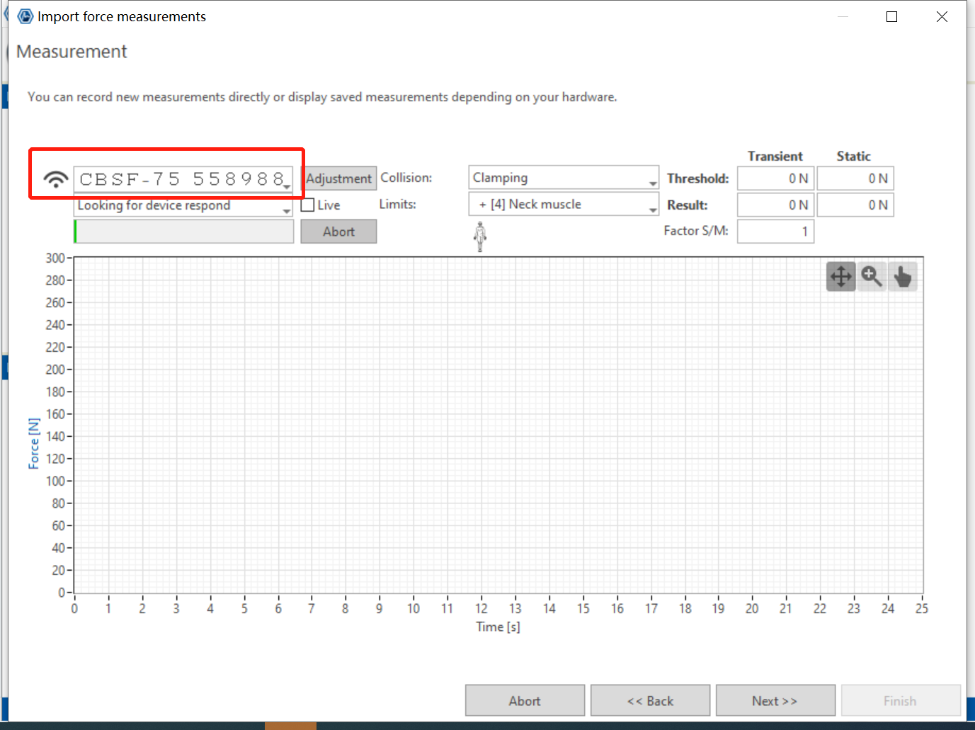 数据线与PC连接好后,点击右上“Force Import”按钮,然后选择对应CBSF按钮,最后根据传感器具体型号选择对应序列号。