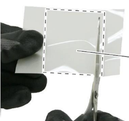 (1)将a,c膜裁剪如下图所示大小。a,c两膜皆一面光滑一面毛糙,使用过程中,将两膜重叠,毛面对毛面,光滑面对外,置于传感器中心位置。