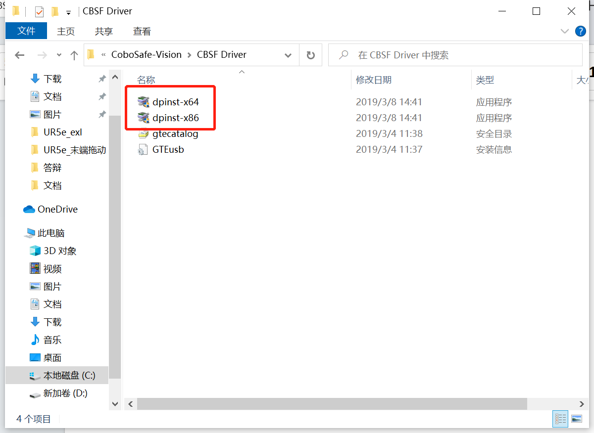 - CoboSafe-Vision软件安装之后,进入对应目录,找到CBSF Driver文件夹,根据系统版本安装USB驱动文件,否则通过数据线,软件无法检测到传感器。