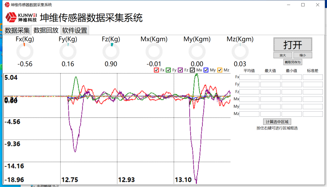 注:右侧红框中最大最小值仅仅在数值上划分,忽略了方向,以Fz方向为例,此时最大值应该为18.96N